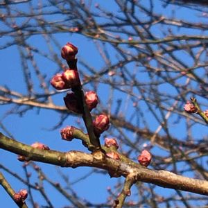 (カキと完全に思っていたら😅)(訂正3月3日)ウメでした。夫実家の畑 花芽がたくさんついていました。 まだまだ寒い🥶けど、着々と春に向かっていますね。 💓昨日は、久しぶりの青空が見られ、お花探し散歩🚶♀️が楽しめました。 おはようございます♪♬ 今日もいいことありますよ〜❄️✨🍊☃️🤗