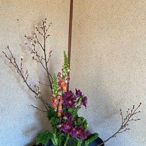 おはようございます😃 また−1℃ですが、昼間10℃になる予報🌤 今日は立春🌷🦋🌼 冬は終わりましたよゞ( ̄∇ ̄;)ヲイヲイ お稽古は 桜🌸 金魚草🧡 アルストロメリア💜 ブロッコリーみたいなアブラナ🥦