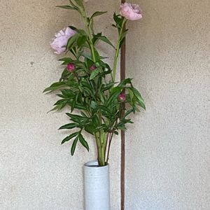 こんにちは😃 土曜日からお天気悪くてやっと晴れ間が🌤️ 24℃を超えました😅 お稽古も芍薬七本のお生花🌸 ピンク三本開いてきたけれど、手前の赤い方はツボミがまだまだ硬くてどうだろう😰