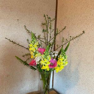お稽古で余った花材を投げ入れ だんだん花咲く