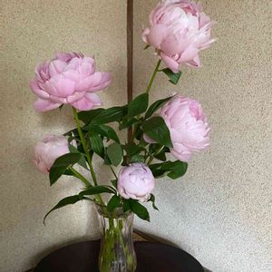 おはようございます😃 ただいま8℃快晴です☀️ 昨日から北風で寒くて、今日は20℃にはならないみたい(≧︎◇︎≦︎)え~! シャクヤクの水上がりが悪く葉っぱが萎れていたので 切り戻りして花瓶に入れ替えました💐🌸💕 全員咲き揃うのか、誰かが散るのか🤣