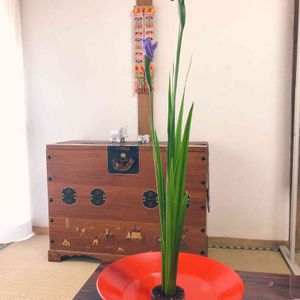 カキツバタとはカキツがハタにさいていることを指しているそうで、花の名前でないことを初めてしりました。いまのじきのカキツは柔らかく、花の重みでしなっています。葉っぱも短く高さのないいけ方になります。一年中咲いているので、時期に応じたいけ方で四季を現すそうです。難しかったけど、今日もたのしかった。