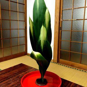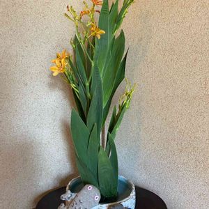 11月 旭はらんの一種活け 花材を見た時震えましたが!なんとか形になりました。葉先の班が昇る朝日のようです。
