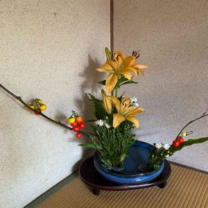 今日8月7日は花の日💐🌼🌷🌻 お稽古は ハナナス🍆 プチトマトじゃないよ(((*≧艸≦)ププッ タニワタリ🌱🌿 百合🧡 菊🤍 地元百貨店から茶道花道具売場がなくなっていたので店員さんに尋ねたところ、撤退したとのこと😱 売れないのはわかるけど、日本の伝統文化なのに😩