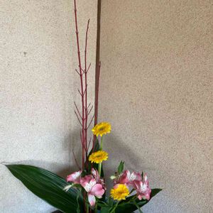 おはようございます😃 ただいま3℃快晴でーす☀️ お稽古は サンゴミズキ❤️ ガーベラ💛 アルストロメリア💓 ハラン🌿 生けてから1週間になるのに持ってます💐 ガーベラかわいい🌼( ु ›ω‹ ) ुL♡VE