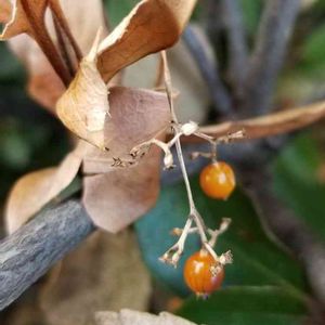 ヘクソカズラの実も見たくて、探しました。 すっかり刈り込まれてしまってて…残ってたのはこれだけ。愛らしい柿色で見つかりました🎵 ヘクソンちゃん❕カズラちゃん❕どちらで呼んでも可愛いと思います😊 ヘクソンちゃんは、GSのどなたかがそう呼ばれてましたヨ。カズラちゃんは、ツル性の様子がよく表れててワタシのお気に入りな呼び方デス😉