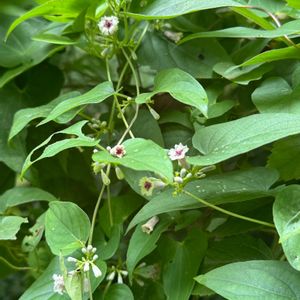 今日のお花 ヘクソカズラ 別名 サオトメバナ 真ん中に苺ジャム🍓 いつも思ってしまう💕 みどりのまとめから ちょこっと散歩 ⭐︎43 2025.8.13