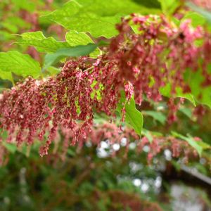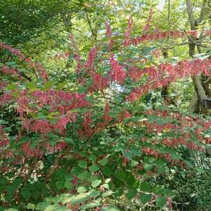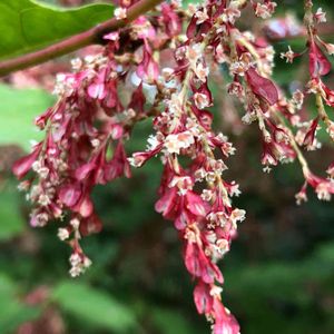 向島百花園は江戸時代から親しまれている花園で、他ではあまり見かけない植物も多いです。 これはメイゲツソウ。和名はベニイタドリ。 タデ科だそうですが、2mはあるので樹木かと思いました。 枝から垂れ下がるように咲く赤い花が満開でした💖
