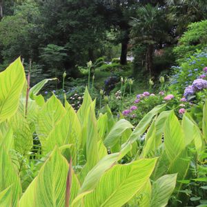 今日のお花.カンナ 紫陽花の棚田で出会った 葉っぱの美しい カンナベンガルタイガー🐅 2025.6.22 紫陽花の棚田