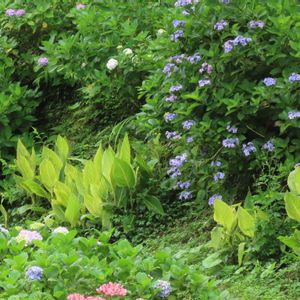 今日のお花・カンナ カンナの葉っぱ色々 ☆1 カンナベンガルタイガーの新芽 ☆2 カンナベンガルタイガーと カンナダーバンと紫陽花 ☆3☆5 カンナダーバンの葉っぱとセージ ☆4 雨上がりのカンナベンガルタイガー 2025.6.22 紫陽花の棚田