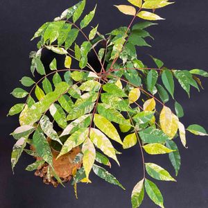 以前、山で見つけて採って来たと言うハゼの木を数年前に譲ってもらいました。毎年綺麗な斑入り葉で気に入ってます。