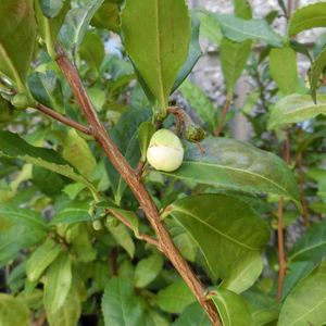 畑と庭の境目辺りで発見👀 お茶の木。 お茶の花。 だそうです。