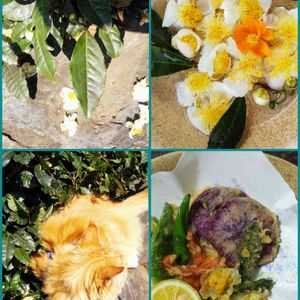 おはようございます☀ 霜月、朝晩冷え込み 霜が降る季節となりました 今月も宜しくお願いします 茶の木🌼*・キバナコスモス と比べ、天ぷらで食してみました、ほんのりお茶の香り苦味ありです^^;紫色は紅サツマイモ🍠 🐈くぅ〜wこっち向いてくれませんでしたニャンฅ(>ω< )ฅニャン♪