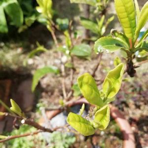 今年一番のお茶の葉っぱ出ました😃。頂いた種からの四年生で去年はいっぱいお花を咲かせてくれました😊。いつか。。。🍵😌✨