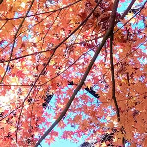 おはようございます☀ 今年は今が見頃のうちの紅葉🍁 今日すごい強風🌪️もしや、今日が今年最高の見頃。記念にうちの愛犬1歳7ヶ月とパシャリ📷