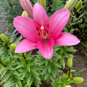 ユリシリーズ第2弾 本日もピンクのユリに出会いました😆 恐らくスカシユリのブリンディジではないかと思いますが…どうでしょうか? ユリも多くの種類があって判別が難しいです。 沢山の蕾が膨らんでおりましたので暫くは楽しめそうです。