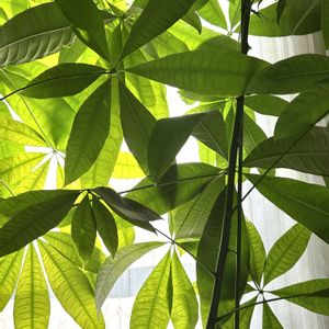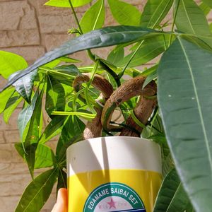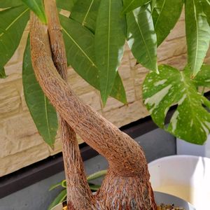 24年3月のパキラが太りました😃完全に2つ合体してる😚鉢カバーに入れないとバランス悪くすぐ倒れるのよね。来年あたり鉢を大きくするかな。