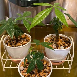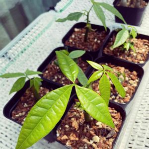 久しぶりのお天気で陽に当たって気持ちよさそうです😊 そろそろ大きくなってきたパキラを1つずつの鉢に分けようと思っています🪴