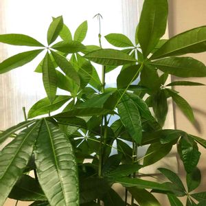 実生2年目パキラ 5枚葉でしたが、ちっさい6枚目の葉が出まして🌱 その次の葉っぱは完全6枚でした🌱 成長していくと枚数が増えるのかな?😄