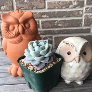 おはようございます☁️ グリーンと陶器とフクロウと🦉 参加させて頂きます🎵 私、陶器のフクロウと勘違いしてましたww🤣🤣🤣 まぁ、いっか🎵 アイスグリーン…🌵 かなり葉数も増えてムッチムチ。 この子、葉挿し成功するかな? 少しもいでみようかな?