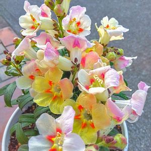 おはようございます☁️ 今日は、昨日までの暑い天気とは一転、肌寒いような曇りの天気です。 本日1枚目の投稿picは、金魚草 ‘’アンティキティ‘’。 名前が可愛いと言うのと、札の写真に惹かれてお連れしましたが、色幅がある花らしく私が欲しいと思っていた色とは違う色で咲きました。なんとも表現しがたい色合い。 以下TefTefさんのサイトから 『水彩画』のように色が滲む花色は 今までのキンギョソウにはなかった雰囲気を持っている『アンティキティ』。 だそうです。うちには他にも色々な金魚草がありますが、こんな色合いの金魚草は初めてです。不思議な色合いの金魚草さんです。
