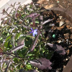 さっき買ってきたばかりのアズーロコンパクト・スカイブルー☺️ 昨年迷ってる間に売り切れてしまい、今年は見つけたら絶対買おうと決めてました🍀 今日のお花がロべリアで運命を感じました~🤣笑 植えたばかりでお花がないですが、成長記録のため投稿します🎵 とりあえず5号鉢です😃