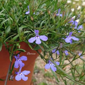 アズーロコンパクト スカイブルーが 咲き始めました🎵 綺麗な花の色です🥰 同じ鉢にブルーウィズアイも植えてます☺️