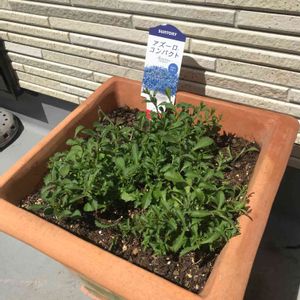 切り戻しした『アズーロコンパクト』(サントリー)💙大きめの鉢なので、裏の説明書通り3苗植えてます🌿🌿🌿1ヶ月後を楽しみに🎵記録用に🤳😊