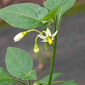 イヌホオズキ ナス科ナス属 道端に花径1cm位の小さな花。 下側には、🟢色の実が付いているのが見えます。 花冠が5つに割れ、星形になっています。 花の形は、トマトの花に似ていますね。 名前の頭のイヌを外したら、ホオズキになる。同じナス科からかな? 葉や実が似ている所から似た名前が付いているのだと思います。