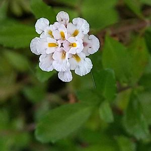 ヒメイワダレソウ(姫岩垂草) クマツヅラ科イワダレソウ属 山に通ずる道路の側溝脇に一輪だけ咲いていました。 花穂は1cm位で黄色い斑紋が見られますね。 同じクマツヅラ科のランタナの花に似た雰囲気があります。