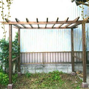 パーゴラ まだ、途中ですが😁 左側のつる薔薇は 🌹ピエールドゥロンサール🌹 ぐい~~んと伸びてはくれないかなぁ~(笑)
