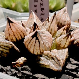 ●ススキノキ科 ツルボラン亜科 ●ハオルチア属 ●H.コレクタ×裏般若 ●ソウルクラウン③ ●ナイルの一滴② ●裏般若実生 ●ミシェルミュータント② ●氷皇😻😻 こちらは安定してる感じですが、氷皇だけは色合いが急激に変わりました…🤔なんで? 遅い休眠期に入ったのだろうか…😅