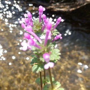 ホトケノザ 紫色の花(4) 用水路に顔を出して 涼しそう! 2023.4.19.午前撮影