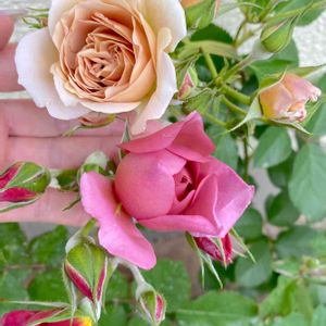 49番目〜🌹 食べられまくって誰?ってなりました、和バラのかおりかざり さん🌹 この間の風で葉っぱもボロ😅 でも、蕾たくさん上げてくれたので、楽しめそうだからいいよね(*/∀︎\*) ちょっと黒星に弱いですが、樹勢は良いのでd(≧︎U≦︎●︎)★︎*.+゚