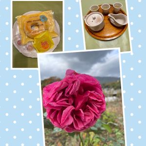 花友先輩❣️ いつもありがとうございます*・゜゚・*:.。..。.:*:.。. .。.:*・゜゚・* 大事に育てられた たくさんの お花の苗、の一つが 綺麗に咲いてくれました💕 そろそろ「猫のおしりランド」 (荒れ放題の耕作放棄地😅) に定植します😊💕 堆肥やゼオライト入れて のびのびした子に育てますからね😊💕 そして とある日のお茶の様子 🍵🍩🍬🍊