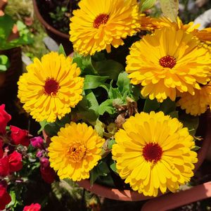 おはよう〜ございます(#^.^#)☀ 今朝はお花さんのお世話日和ですね💕 花友さんから頂いたキンセンカ💛💛💛💛💛たくさん咲いてくれて嬉しいなぁ〜💕 元気頂いて今日も頑張ろうっと🤗
