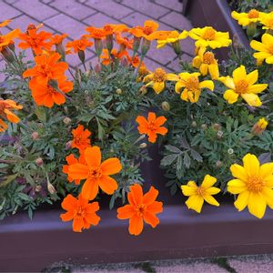 マリーゴールド 北海道からの帰り道🚗³₃ 高速道路のSAのお花🌸🌼*・ 長旅の疲れを癒してくれます(* ॑꒳ ॑* )⋆* オレンジ🧡黄色💛 とっても元気な子達(o❣̈'*')o❣̈ お世話してくださってる方達へ… ありがとうございます❣❣
