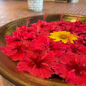 宮古島のホテルで ハイビスカス🌺の花手水が綺麗でした