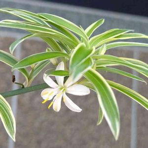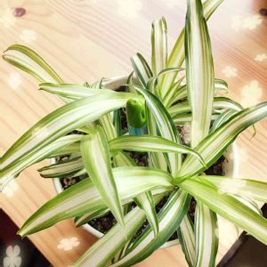 我が家の折鶴蘭と葉の白い所と緑の所が逆の苗を頂きました🤗 さっそく鉢植えです。