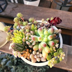 何だと思いますか? ①乙女心?の左 ②その左の細葉セダム2種類 ③その下のオレンジ色 あとは 姫秀麗、ブロウメアナ、ドラゴンズブラッド、パリダム、リトルミッシー、ミルキーウェイかなと思ってます。 この前の日曜に 奈良の王寺でやっていた うちゃパークという多肉イベントでお迎えしました☆ 300円!お得にゲットできて嬉しい♪