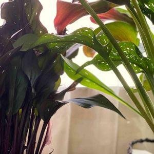行きつけの園芸店にて。 黒い葉のカラー発見‼︎ メモリーズという名前でした。ワカメみたい😆