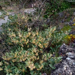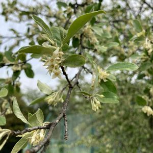 ビッシリと花を付けた、アキグミがありました😍 花がクリーム色、葉にはビッシリと鱗状毛があるので、全体的に白っぽく見えて写真写りは良くない樹木です。 グミでいう、ナツグミとかアキグミというのは花期ではなく果実が熟す時期を指します。花期はともに春です😊