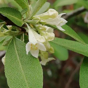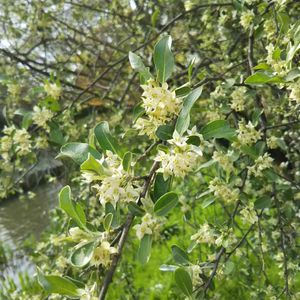 アキグミ💕 去年は花をつけなかったアキグミが、今年はどの枝も蕾がぎっしり🎶 これはかわいいですね😀 去年秋に見たナワシログミや、ツルグミは花に無数の点々がありましたが、このアキグミは花の点々は少ないです。 そのかわり葉に、点々が‼️ これは何でしょうね⁉️ 他の方の投稿を見たら、良い匂いがするそうです。出勤の時に嗅いでみますね🎶😀