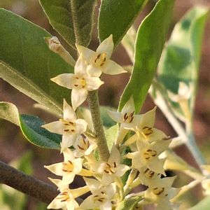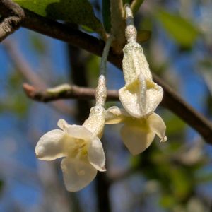 アキグミかな?マルバアキグミかなあ?海岸沿いの道路横では、たくさんの木が花をつけてました。この辺りではシャシャブと言います。