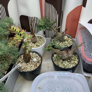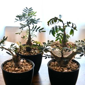 センナ・メリディオナリスは、猛暑のせいか、室内管理でも不調のものが多いです。今は分散して管理しています。一番元気なものは腰水を終了しました。