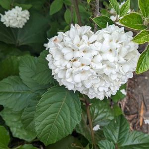 大手毬の様だがもっと重そうな花。モクセイ科らしくとても良い香りがします。撮っている間にも蜂🐝さんが来ていました。 花に芳香があり、和名のオオチョウジガマズミは香料植物のチョウジ(丁子)の花形、香りにちなんでいます。 *日本では長崎県対馬にしか自生しない貴重な落葉花木