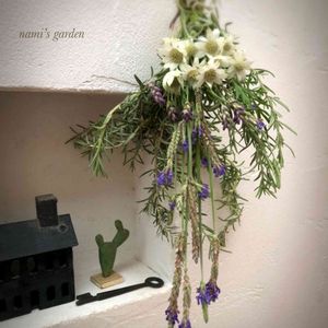 お庭で摘んでスワッグに… 香りと色彩に癒され、空気も浄化される気がします✨