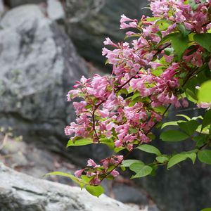 可愛いピンクが山を流れる小川のほとりを彩っていました。 タニウツギの花。