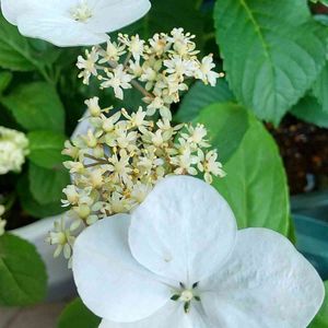 ちょっとわかりにくいけど、ヤマアジサイうるはの装飾花の中心の小さい小さいピンクの花をお楽しみください💖