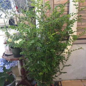 《ユーカリ》グ二ー お迎えして3年目✡。:* 20cm程だった子苗が3m以上に成長中(ºωº)!! 緑が植えられない、完全なコンテナガーデン。。。 しかもお隣さんの物置があるため北側状態なのに頑張ってくれてます✨